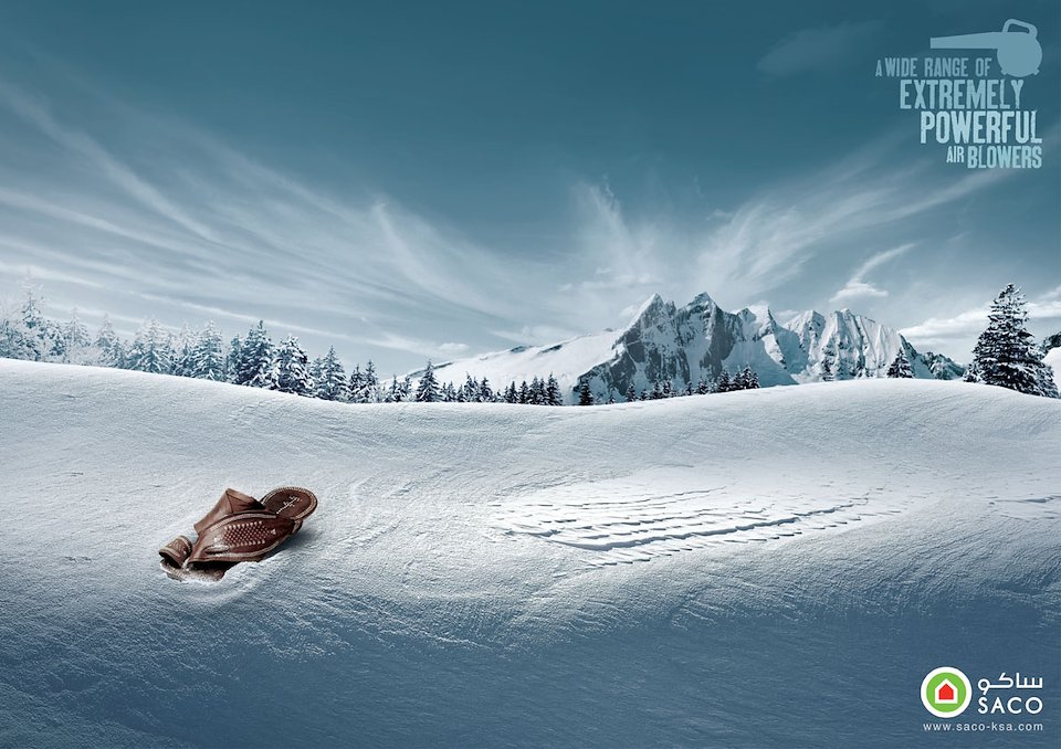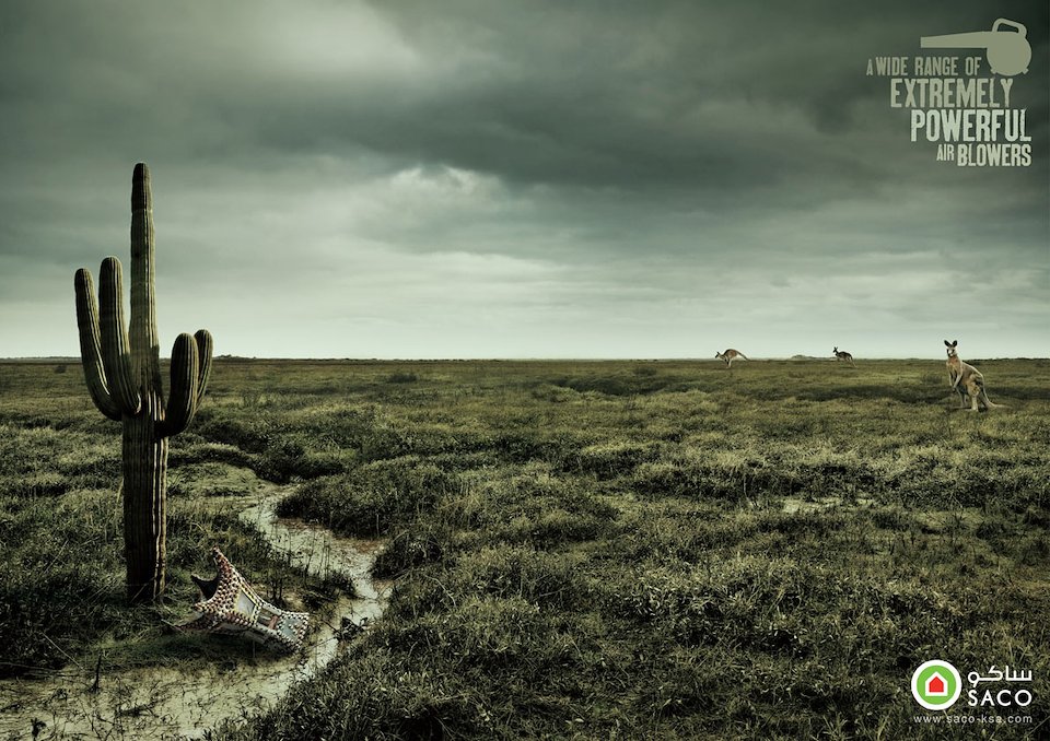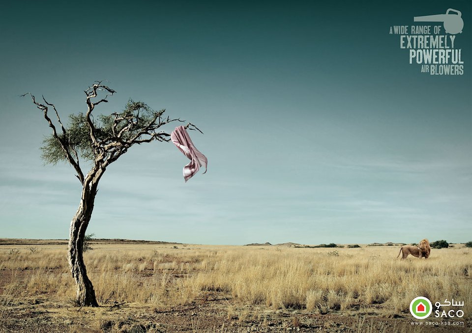 To illustrate the power of air blowers offered by SACO – the largest hardware retail chain in KSA – we created this series of print ads.