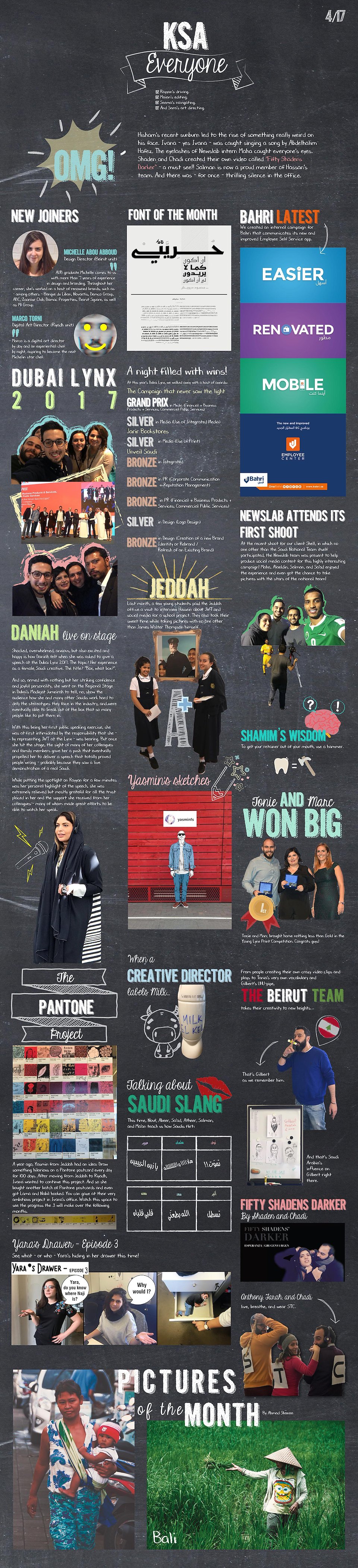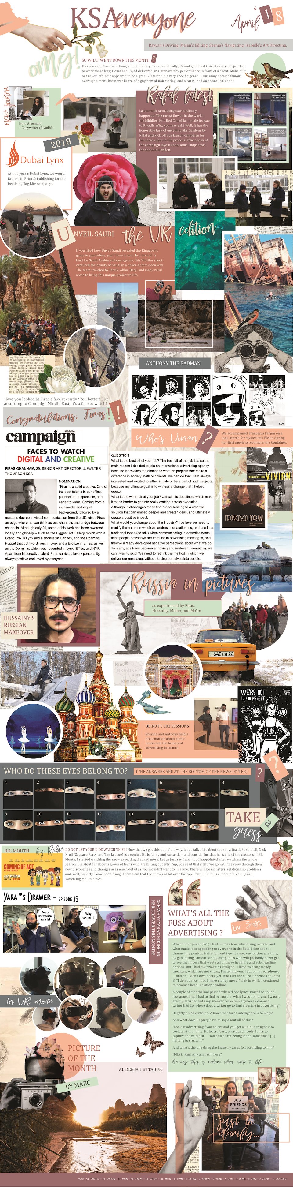These are a few examples of the monthly internal newsletter of J. Walter Thompson Saudi Arabia that I have been writing, editing, and managing since 2011 till when I left the agency, which was 2019.