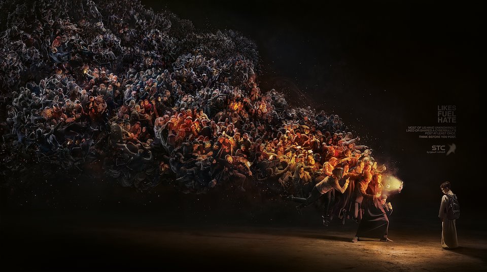 This print ad tackled just that by conveying the message that one tiny Like can contribute to helping content – and possibly means of bullying – spread like wildfire.