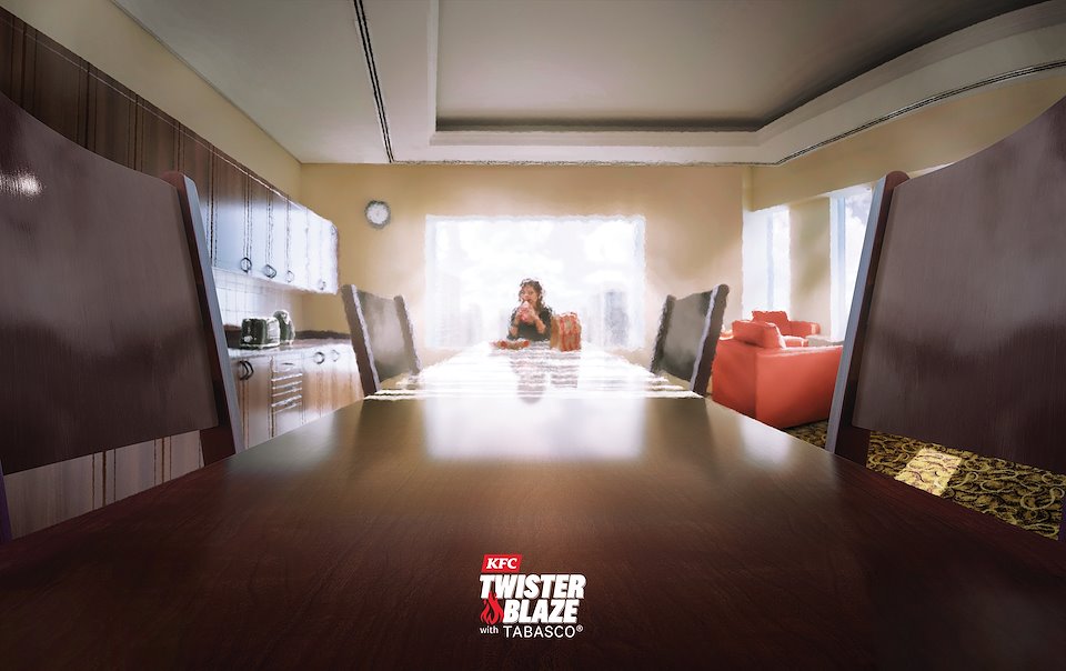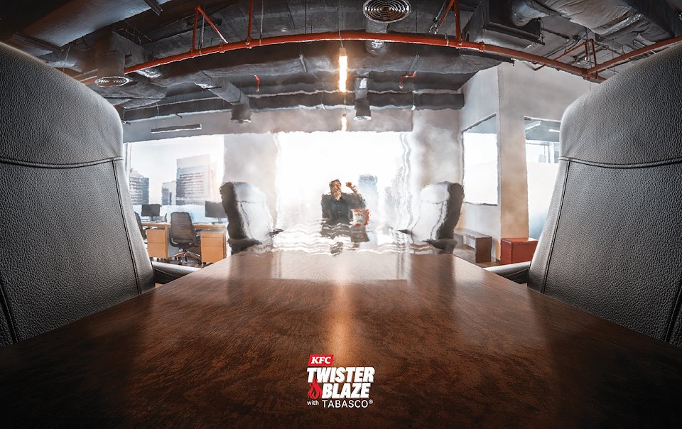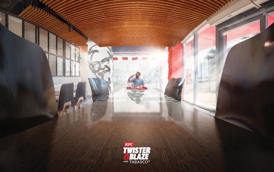 KFC’s extra hot Twister Blaze with Tabasco sauce causes your very own heat mirage – only instead of on the highway – wherever you may devour delicious KFC chicken.